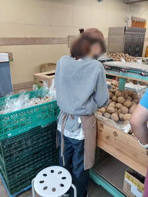 野菜の袋詰め作業。機会も使いながら、自分で工夫して頑張っていましたよ( *´艸`)
