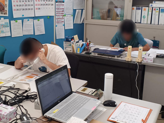 スタッフのデスクで、実際に電話応対が出来るように✨